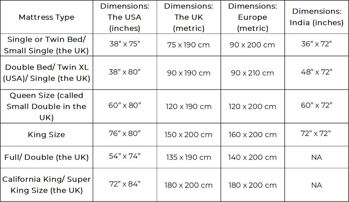 Mattress Sizes Chart And Bed Dimensions Guide Turmerry, 53% OFF